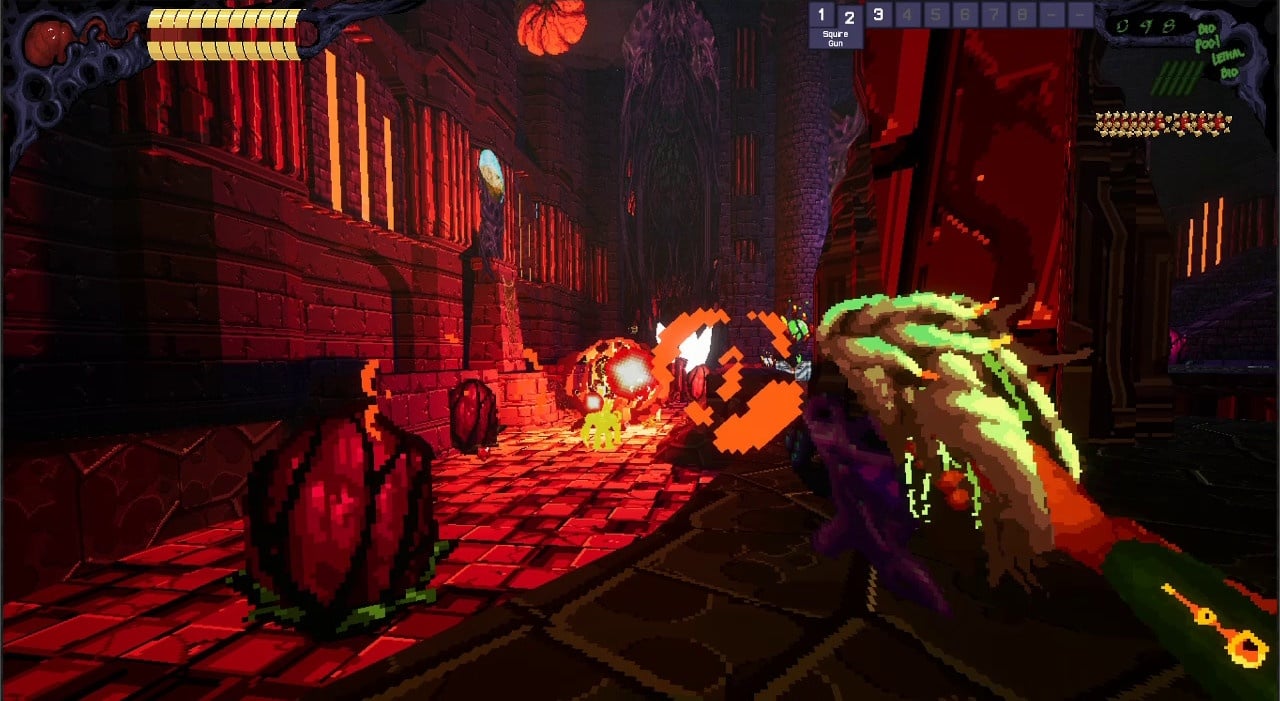 Корабль выполнен в стиле биомеханики, сочетающий в себе технологии и живую плоть. Стены шаттла по-настоящему живут собственной жизнью. Арсенал оружия включает в себя огромное количество разнообразных футуристических пушек. Вам предстоит комбинировать стволы, чтобы эффективно противостоять врагам. Многие враги защищены броней, поэтому предстоит сначала избавиться от нее посредством тяжелых пушек.