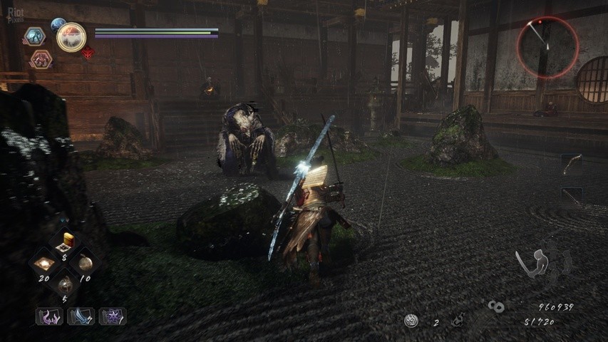 Боевка построена по принципу соулсборн-франшизы, основываясь на стамине, уворотах и парировании. Каждый монстр представляет серьезную угрозу. Даже рядовой противник способен нанести сокрушающий удар, отправив героя к праотцам. Каждый босс представлен могущественным демоном со своими паттернами атак. Потребуется изучать сильные и слабые стороны монстров, чтобы максимально эффективно сражаться против чудовищ. Главгерой владеет разнообразным вооружением, включая катану, кусаригама, одати и т.д. По мере прохождения открываются новые способности. Действия разворачиваются до событий оригинального приключения в 1500-х годах.
