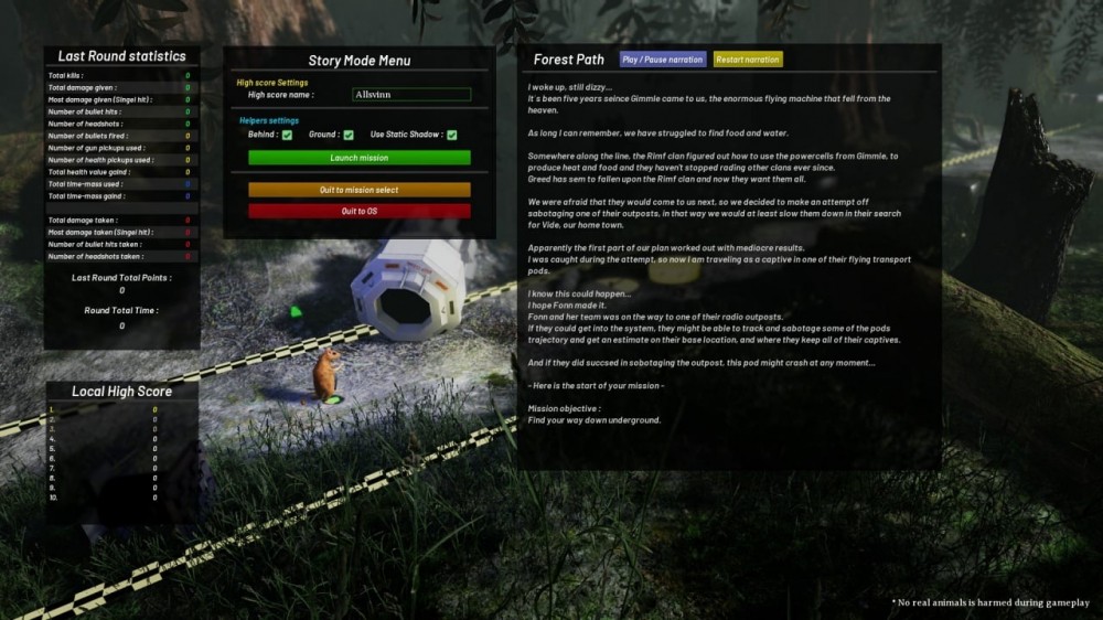 Главный персонаж может ходить влево, вправо, вверх, вниз и по диагонали, прыгать и стрелять из пушек. Можно вести огонь после прыжка прямо в полете. С собой позволяют носить два ствола и быстро переключаться между ними. Протагонист умирает очень быстро, поймав шальную пулю или упав с высокой высоты. Однако враги тоже гибнут практически мгновенно. В случае смерти героя на экране показывается финальный счет (здесь есть таблица лидеров), после чего поединок перезапускается. Схватки проходят в лесу, пещерах, складских помещениях, горной местности. Роль противников играют вооруженные до зубов крысы.