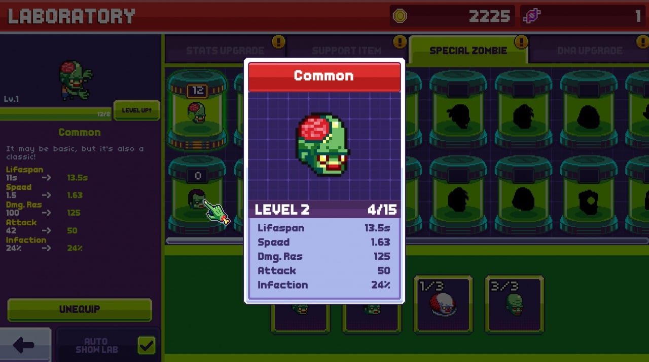 Вместе с такой ордой главный герой преследует цель уничтожить все человечество и погрузить мир в хаос. В игре доступны более 35 видов различных зомби. Сперва можно будет создавать только самых слабых представителей нежити. По мере накопления ресурсов, ДНК вируса получится прокачать, сделав собственную армию сильнее.
