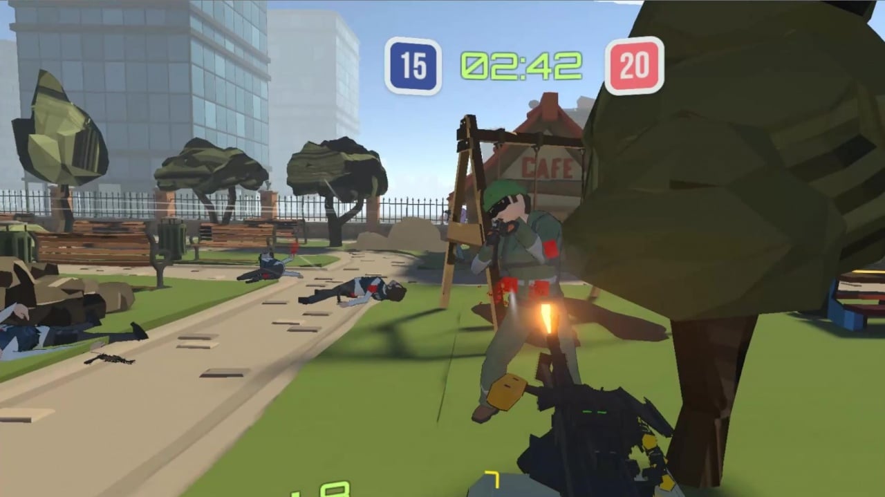 Headshot VR – шутер 5х5, в котором участники сражаются между собой при помощи очков виртуальной реальности. Присутствует 3 карты и 7 оружия на выбор. Геймеры стреляют из пистолета, дробовика, ружья, штурмовой и снайперской винтовки или убивают холодным оружием.