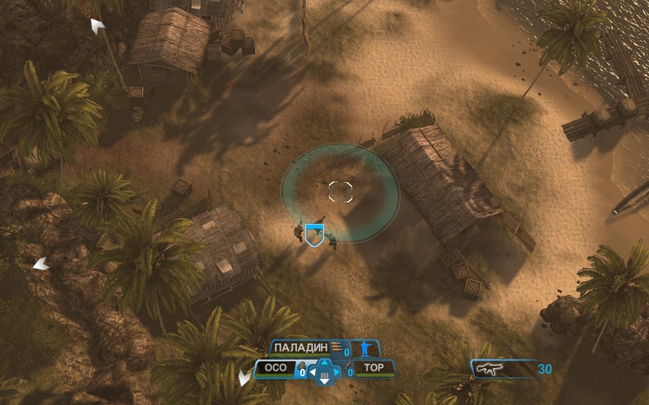 Чтобы понять, какое число противников ожидает вашу группу далее, игра предлагает перейти в тактический режим, где с вида сверху можно распознать недругов (они подсвечиваются красным цветом) и цель, которую нужно устранить (белым), кроме того виднеются спасательные медикамент и ящики с оружием.