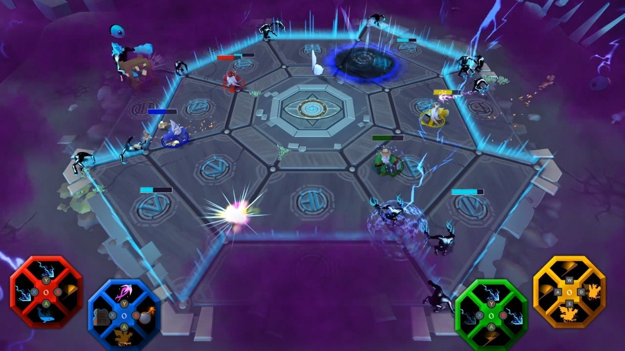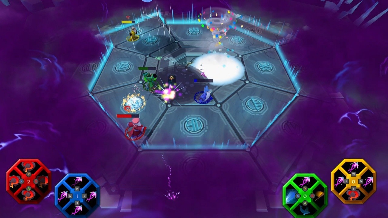 Кастуйте магию, призывая китов, кидая волейбольные мячи, цыплят, фаерболы и т.д. С каждой секундой арена для поединка будет становиться меньше. Это сподвигнет вас быстрее принимать решение и наносить только самые мощные атаки. Толкайтесь, взрывайте и всячески старайтесь перехитрить соперников. Играть в в Dumb As Wizards можно через интернет или по локальной сети, сидя на одном диване.