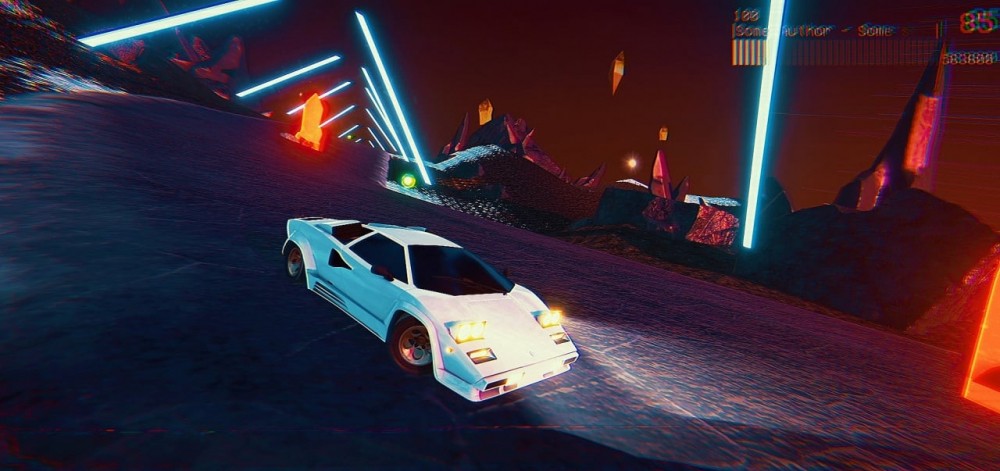 Начав путешествие на машине, геймер способен поставить собственную музыку или выбрать стандартные треки. Окружение меняется в зависимости от выбранной песни. Можно выбрать свободной режим, где не будет препятствий на пути. Юзер способен просто ехать по бесконечной дороге и думать о своем. В обычной гонке понадобится объезжать препятствия, набирая очки, постепенно повышая темп заезда. Ловушки создаются по ходу звучания песни, биты могут установить трудности или бонусы.