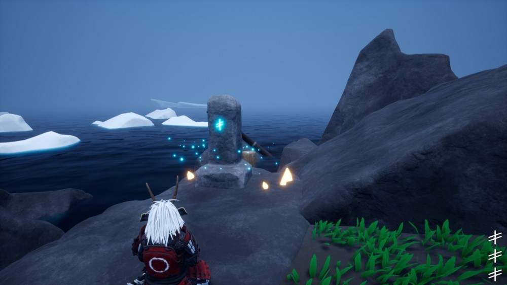 Герой умеет бегать, высоко прыгать, драться катаной. Он умеет наносить разные удары, выполнять комбо, блокировать вражеские атаки. Схватки с противниками выполнены в форме дуэлей. Битвы тут напоминают файтинги. В перерывах между схватками самурай плавает на плоту, гуляет по льдинам пешком и ищет рунные камни. Он ориентируется на местности с помощью карты. Этот геймплей иногда разбавляется беседами с NPC.