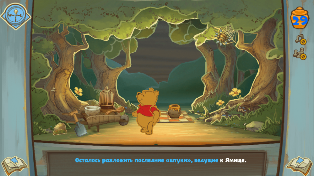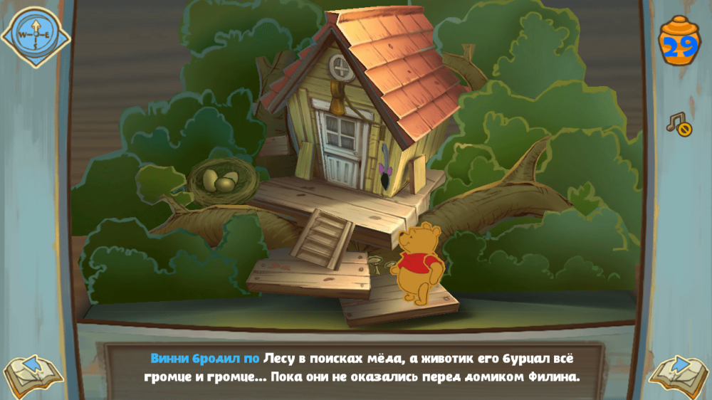 Winnie the Pooh представляет собой сборник рассказов и мини-игр. Повествование разделено на главы. За их завершение дают в награду горшки с медом. Это своеобразная внутриигровая валюта. За неё можно разблокировать дополнительный контент. В игре также есть листки с домашними заданиями, которые можно распечатать, чтобы ребенок уже в реальном мире, а не сидя за компьютером, раскрашивал и заполнял их.