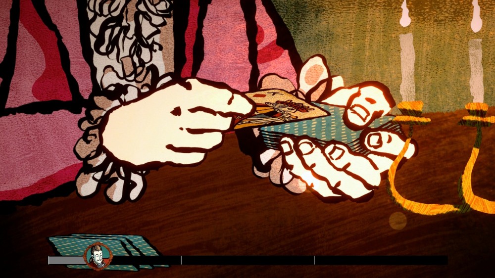 Геймплей представлен в виде двумерного приключения с боковой прокруткой. Большинство миссий завязаны на победе в картах, что позволяет продвинуться по сюжету и заполучить разные возможности. Постепенно искусственный интеллект становится сильнее, а победить в соревнованиях сложнее. Всё начинается с местного карточного салона, но в дальнейшем откроется доступ королевскому столу. Центральный персонаж обучается новым навыкам и способностям.