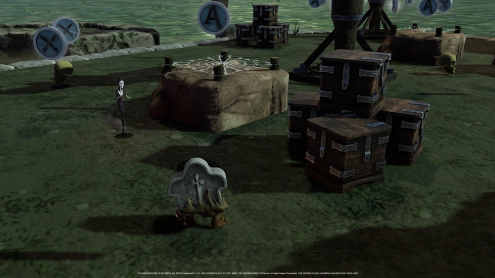 Для прохождения этапа нужно просто добраться до его конца, собрав по пути необходимое количество монет. Мешают достижению цели монстры, ловушки, пропасти и прочие препятствия. Геймплей разбавляется мини-играми. Ещё можно выполнять побочные задания. В награду за них выдаются медальоны. Они необходимы для получения доступа к следующим уровням. Протагонисты передвигаются по ним в уменьшенной форме. Поэтому на фоне крошечных человечков простые предметы, вроде свечей, кажутся гигантскими. Локации тут разнообразные. Есть кухня, лаборатория, кладбище и другие места. На выбор дается 4 персонажа: Гомес, Мортиша, Пагсли и Уэнзди. Они различаются внешностью и одним особым навыком. Например: глава семейства может использовать саблю "Мазурка", а его сын способен призвать домашнего осьминога по кличке Сократ.