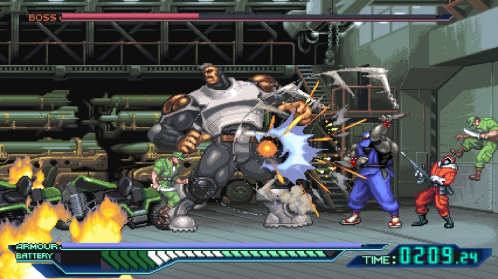 Каждый из пяти ниндзя-андроидов обладает своими уникальными навыками ниндзюцу, позволяющими вам выбирать стиль, который подходит именно вам. Сражайтесь вместе с другими восставшими ниндзя против армии Банглара, восстающей против тирана Мулка. В игре удачно сочетаются классический 16-битный стиль с современными инновациями. Экран расширен с 4:3 до широкоформатного 16:9, при этом удалось сохранить атмосферу оригинала. Фоны стали более детализированными, а анимация персонажей - плавной и реалистичной.