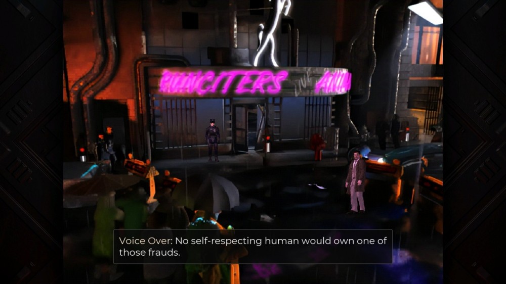 Протагонист задает три вопроса разной степени сложности и пытается выявить эмоции у андроида. В отличие от многих квестов, герой может умереть. Присутствуют секции экшена, в которых есть возможность получить ранения. Если Рэй пропустит несколько ударов или в него попадет пуля - протагонист погибнет. Чтобы восполнить здоровьем, необходимо купить еду или выпить алкоголь.