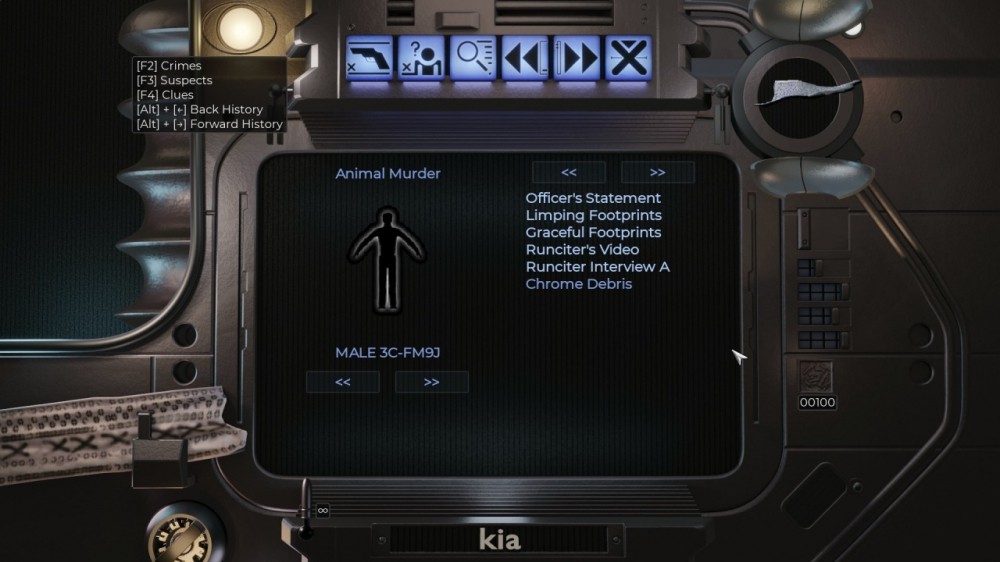 Чтобы находить улики, требуется тщательно исследовать локации. Активные предметы протагонист рассматривает, приближая объект к экрану. Если на них есть интересные детали, игра предоставит возможность детальнее рассмотреть участок предмета. Квестовые объекты доступны для вращения в трехмерном пространстве. Находки и различная информация, помогающая в расследовании, передается в криминальную базу данных.