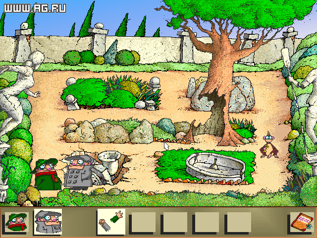 Управлять ребятами нужно только с помощью мыши, внизу экрана виднеется перечень инвентаря и специальная папка с документами, где хранится вся информация о своеобразном расследовании. На доске статично находятся две руки, нажав на которые можно схватить или бросить нужный протагонисту предмет.