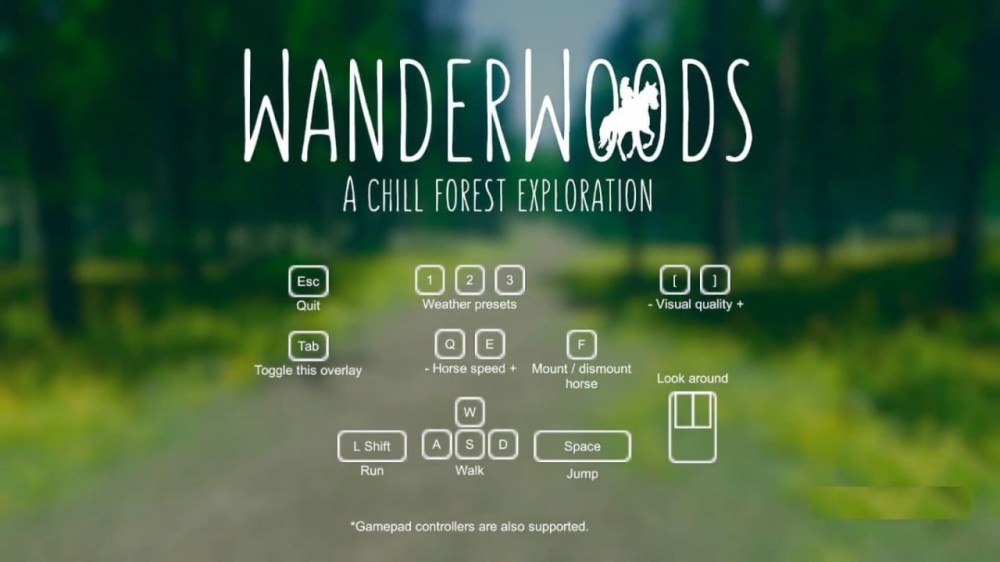 WanderWoods – приключение от первого лица. Игровая территория генерируется процедурным образом по мере продвижения пользователя. Главный герой перемещается по тропинкам, путешествует в глубинах леса, исследует каждый кустик, оглядывается по сторонам и наслаждается природой.