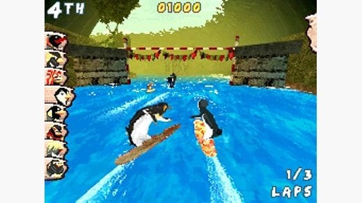 Присутствует выбор из 23 типов досок. Причем их разрешают улучшать. У каждого средства передвижения есть 4 параметра. Они отвечают за умение наращивать скорость, фристайлить, вращаться как можно быстрее и сохранять энергию. Для соревнований доступен 21 уровень. Гонки проходят в Антарктиде, на острове Пингу и бухте, прозванной Камнями Смерти. Для победы нужно проходить через контрольные точки, выполнять трюки и зарабатывать очки. Разбросанные множители помогают увеличить счет. Когда персонаж оказывается "внутри" волны, то включается мини-игра, оформленная в виде QTE. К слову, проект не поддерживает мышь, а при управлении с клавиатуры игра не позволяет сменить раскладку.