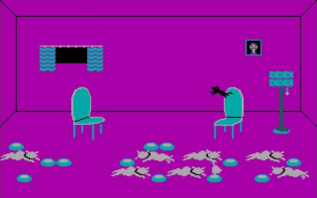 - У двери спять собаки, охраняющие тарелку молока. Следует тихо пробраться и все выпить.