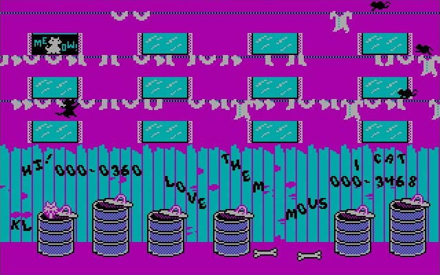 Игровые механики Alley Cat позволяют перемещаться и прыгать уличным котом, посещая разнообразные участки доступных локаций, такие как мусорные баки или забор. Есть возможность взбираться на сложно доступные объекты, карабкаясь при помощи когтей, например, на свисающие веревки или другие мягкие элементы интерьера. Противниками для главного героя становятся бродячие собаки, которые набросятся и начнут преследование, как только заметят свою цель или другие коты, мешающие передвигаться свободно по карте. Опасность представляют предметы, которые могут быть сброшены из окон домов на протагониста. Требуется пробираться сквозь все трудности и препятствия, уклоняясь и убегая, чтобы попасть в окно необходимой комнаты.