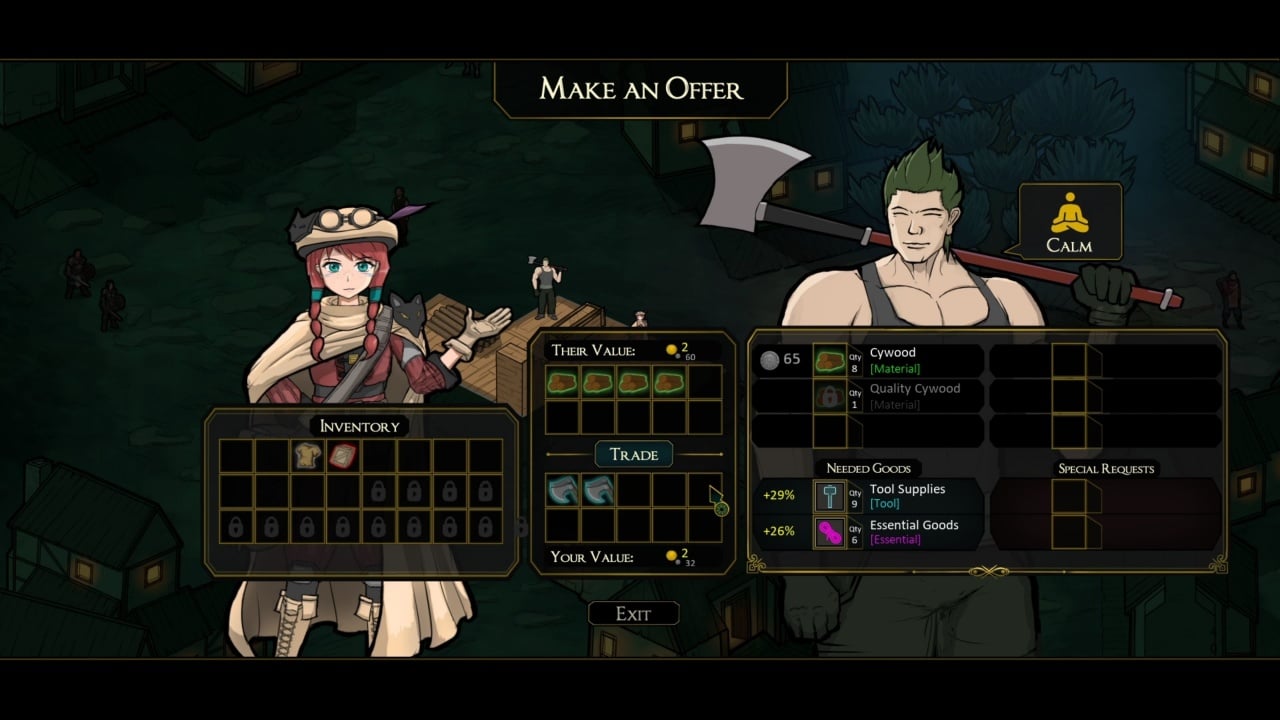 Вторым важным аспектом Ten Thousand Coins выступает система бартера. Не обязательно покупать или продавать товары. На пути встретятся харизматичные торговцы, странствующие купцы и т.д. У каждого из них есть свой инвентарь, в котором находятся важные и полезные предметы. Предложите ему обменяться вещами. Мир игры - огромный. Одна вещица, стоящая сущие копейки в одной части королевства, может озолотить вас в другой. Знание того, что предлагать торговцам в разных регионах - ключ к успешной торговле!