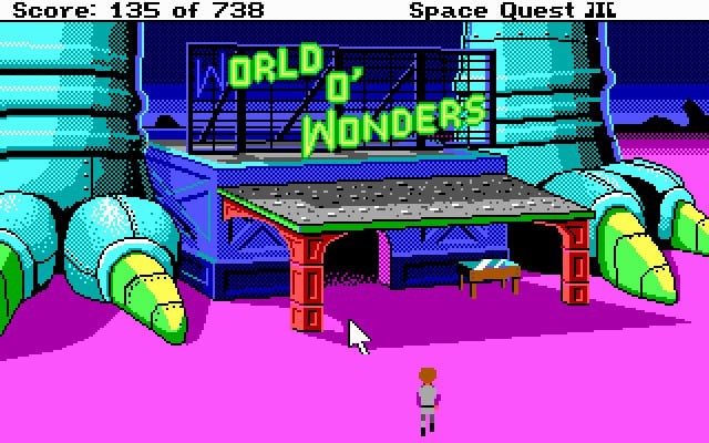 Геймплей в Space Quest III: The Pirates of Pestulon включает в себя сразу несколько базовых механик. Прежде всего, это перемещение в двухмерном пространстве с возможностью использования сторонних предметов на локациях. Далее, это мини-игры, которые меняются прямо по ходу прохождения. Так, в один момент персонаж управляет роботом в бою на арене, а уже несколько минут спустя пытается посадить взлетающую курицу на платформу. За эти и другие активности полагаются очки прогресса, успех накопления которых зависит от результатов пользователя. В перерывах между активными фазами игрового процесса присутствуют диалоги со сторонними персонажами, где не без доли юмора раскрываются некоторые сюжетные детали. Кроме того, по ходу выполнения некоторых испытаний можно наткнуться на многочисленные отсылки к поп-культуре, персонажам кино или прочих игр. Что касается визуальной составляющей, то она имеет довольно специфический вид, ведь большинство локаций оформлены с помощью переливания цветов и ярких оттенков. Это выглядит необычно, но именно это и отличало все подобные проекты того времени.