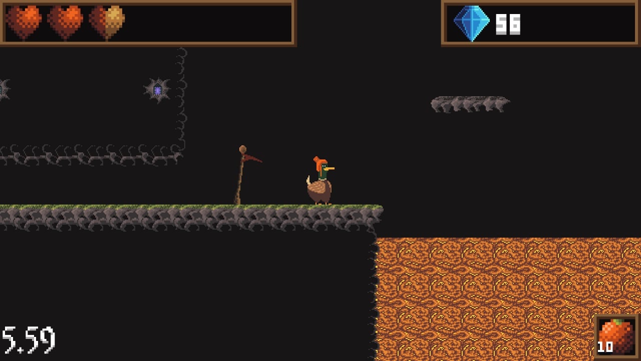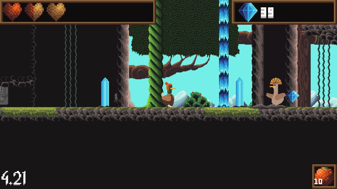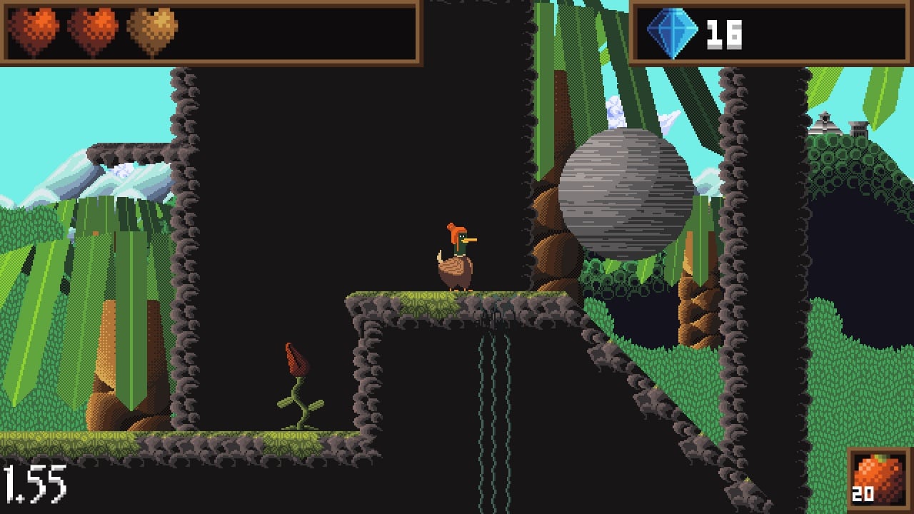 Кроме обезьян на уровнях его будут поджидать и другие неприятности. Главному персонажу лучше держаться подальше от летающих стрел, падающих валунов, скачущих лягушек и крокодилов в боксерских перчатках. Иногда на локациях встречаются дружеские NPC – другие представители семейства утиных – и два вида драгоценных камней. Ценные штуки нужно собирать по законам аркадного жанра. У птицы несколько жизней. Если не успеть добраться до чекпоинта, то в случае смерти придется начинать уровень сначала.