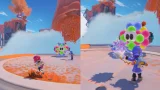 POPUCOM — это веселая кооперативная прогулка на чужой планете, где нужно буквально разрисовывать мир вокруг себя. Вы с друзьями высаживаетесь сюда, чтобы исследовать красочные просторы, решать задачки и — внезапно — восстанавливать этот странный мир с помощью цвета. Вся игра завязана на том, что вы меняете цвета: решаете головоломки с помощью перекрашивания объектов, сражаетесь с местными монстрами, да и вообще двигаетесь вперед только когда правильно комбинируете оттенки. Плюс, тут есть фишка “три в ряд” — всякие пушечки, стреляющие цветным гелем Pomu, которым можно перекрашивать и локации, и врагов. Это нужно, чтобы добираться до новых мест или отключать ловушки. Без командной работы тут никуда: часто без поддержки напарников всё встает. То одному нужно активировать механизм нужным цветом, то другому быстро сменить гель и отбиться от врагов — всё строится на взаимодействии и импровизации.