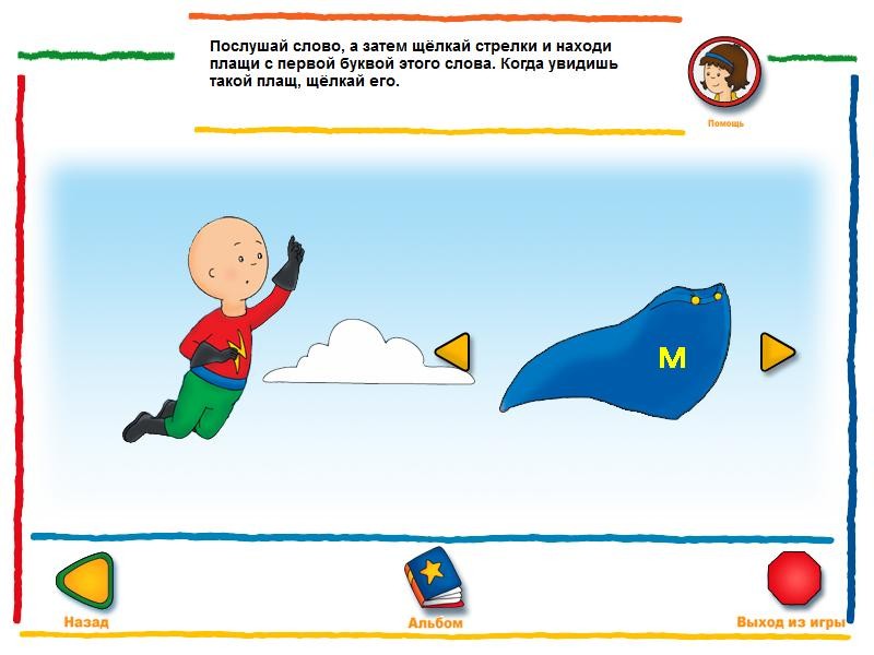 В "Caillou Ready To Read" присутствует главный рассказчик по имени Лёлик. Он проведет пользователей юного возраста через лабиринт интересных и познавательных уровней. Дети научатся отличать буквы по виду и звукам, а также рифмовать веселые строчки, меняя местами предложения. Каждое задание – отдельная мини-игра, где можно взаимодействовать с представленными буквами, словами, предметами и объектами.