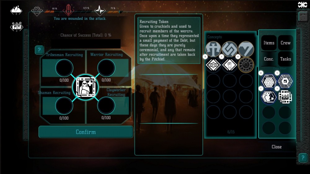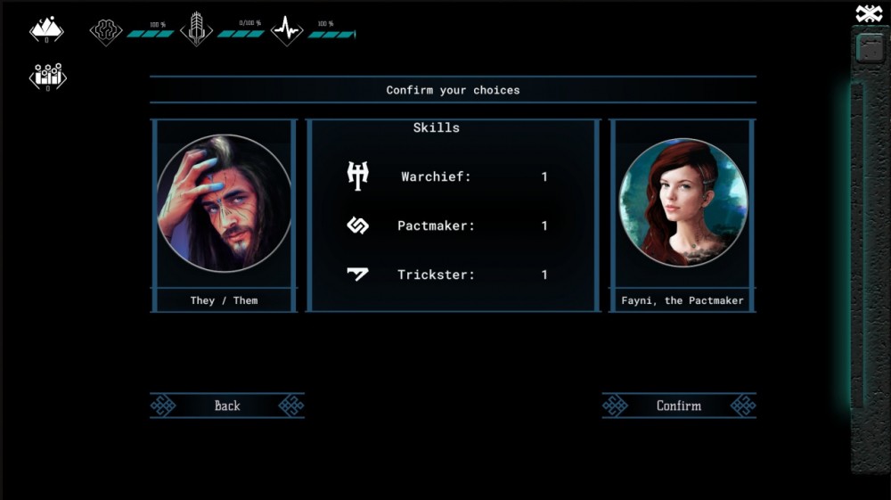 Центральный персонаж принимает решения и влияет на дальнейшую судьбу собственного народа. Ему открыт выбор: следовать традиции и делать то, что совершали другие вожди, либо пойти своим путем и попытаться разгадать все загадки, связанные с прошлым рода. Товарищи помогают в преодолении препятствий, а также они имеют собственные пути и истории. Следуя за ними, они отведут в дальние уголки города. Подопечный обладает 3 атрибутами: вождь, собеседник и обманщик. Юзер может решать проблемы, применяя физическую силу, помогать людям в их трудностях или действовать вне рамок договоренностей.