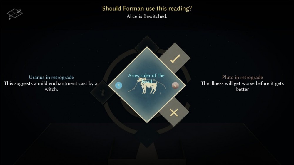 Игровой процесс Astrologaster, напоминает жанр визуальных новелл. Игроку предстоит выслушивать проблемы людей, формулируя вопрос, который впоследствии задаем картам звездного неба, чтобы разгадать полученную дилемму. У геймера будет 2-3 выбора, которые повлияют на дальнейшее развитие событий. Каждый выбор, сопровождается подтекстом с краткой информацией, чтобы выбранный вариант был более осмысленный. Прибывшие пациенты, будут по-разному реагировать на ответы Саймона, даже если ответ покажется им правильным, то впоследствии, возможно окажется плачевным.