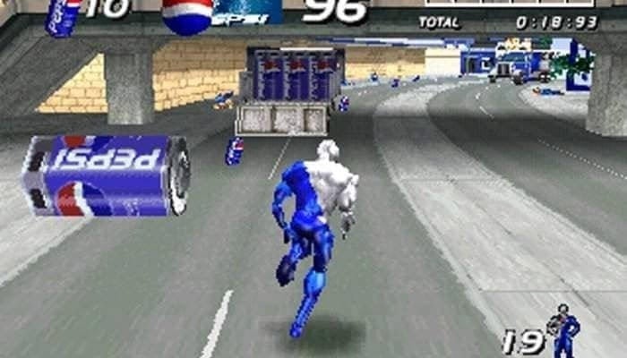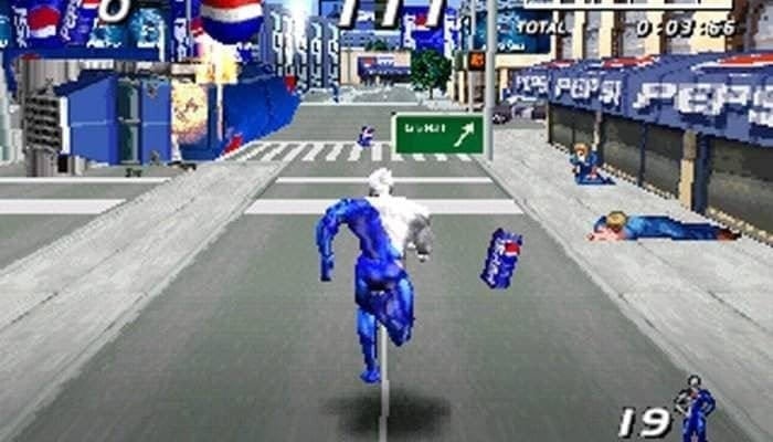 Pepsiman – известная на PlayStation игра в жанре экшен. Главный герой – супергерой Пепсимен, талисман Пепси, вынужден бежать, уворачиваясь от препятствий, чтобы напоить страдающих от жажды людей.