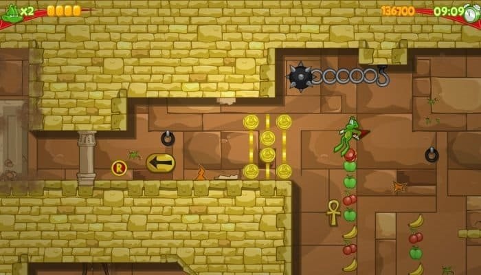 Все этапы разделены на 6 разных измерений, в которых изменяются декорации на заднем фоне. Между уровнями присутствуют несколько видов мини-игр для заработка монет и дополнительных бонусов. Но самое важное, что привносит данная механика – систему кодов, дающая сохранить прогресс и даёт возможность начать с этого места при перезапуске.