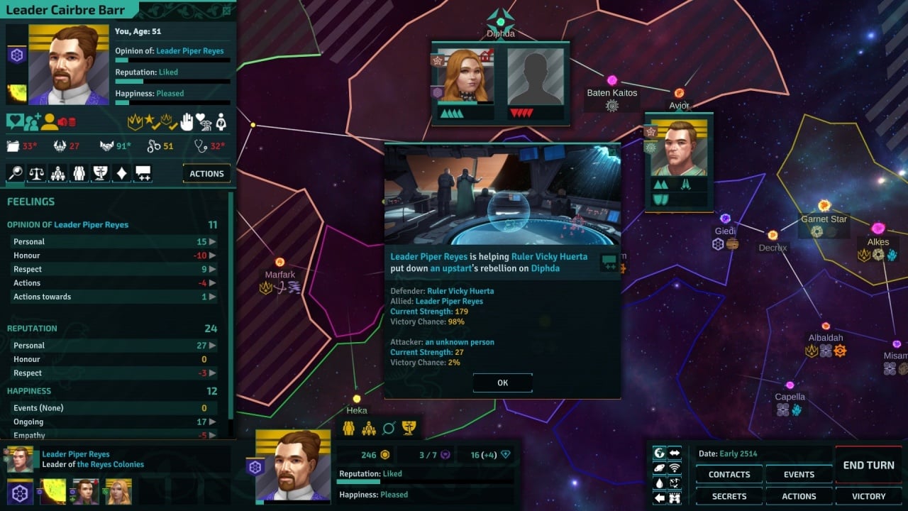 - Станьте правителем большей части галактики и решайте судьбы своих подданных на протяжении нескольких поколений. Вы можете наказать провинившихся и наградить фаворитов. Сделайте так, чтобы ваша династия стала доминировать над остальным человечеством.