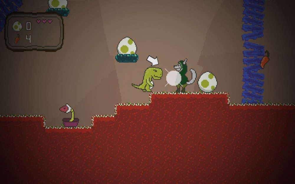Монстр может дышать огнем, что очень помогает при борьбе с противниками. Это могут быть лесные животные, а также плотоядные растения в горшках. Они атакуют только когда герой появляется в радиусе поражения, поэтому можно атаковать с дистанции, оставаясь в безопасности. Процесс перемещения упрощается, ведь над головой всегда имеется стрелка, указывающая путь к ближайшему яйцу. Они разбросаны по разным частям территории, а с учетом того, что под рукой нет карты или локатора, следует выставить приоритеты по целям. Со временем, к сбору яиц добавится морковка, а сами уровни при этом станут больше. Появятся лестницы и курсирующие платформы, с помощью которых можно взобраться на более высокую точку. Получая урон, пользователь будет терять одну единицу жизни, которую можно восполнить только подобрав аналогичные на локациях. Когда очередной этап в Dino Dawn будет завершен, на глобальной карте появится соответствующая метка.