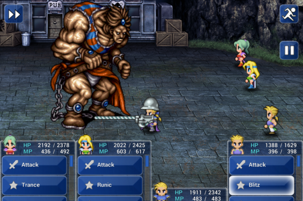 Можно свободно перемещаться по карте мира, исследовать города и данжи, прокачивать персонажей, а также сражаться с многочисленными фэнтезийными существами. По миру можно перемещаться пешком, на воздушном корабле и верхом на чокобо. Каждый герой команды имеет свои уникальные способности. Характеристики персонажей можно прокачивать и повышать при помощи реликтов. Герои способны наносить сокрушающие атаки. Героями выступают Терра Тина Бранфорд, Локк Коул, Целес Шир, Эдгар Рони Фигаро, Сабин Рене Фигаро и многие другие персонажи.
