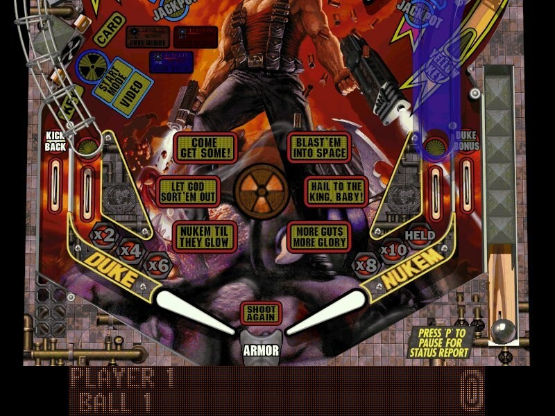 Геймплей включает специализированную таблицу, спроектированную по видеоигре Apogee и Duke Nukem 3D. Также был представлен закадровый голос главного персонажа франшизы Дюк Нюкем. В процессе геймер будет бороться с монстрами: свиньями-копами и окатбренами. Устраняя соперников, из них выпадают бонусы, как голодуки и реактивные ранцы, облегчающие сессию и дающие множитель к баллам. Прохождение начинается на уровне "Голливудский холокост", где Дюк походит к столу.
