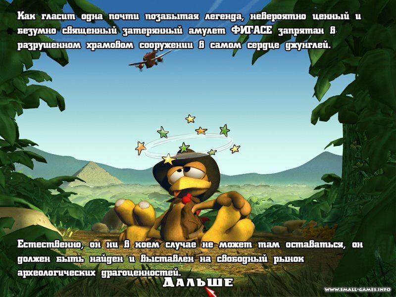Морхухн Джонс и забытый амулет – приключение, в котором главный герой отправляется в опасное путешествие. Он оказывается в джунглях, где ему удалось обнаружить древний и заброшенный храм. Вычитав многие справочники и порывшись в множественных источниках, Джонс узнаёт о легенде, гласящей, что в данном храме хранится могущественный древний артефакт Фигасе.