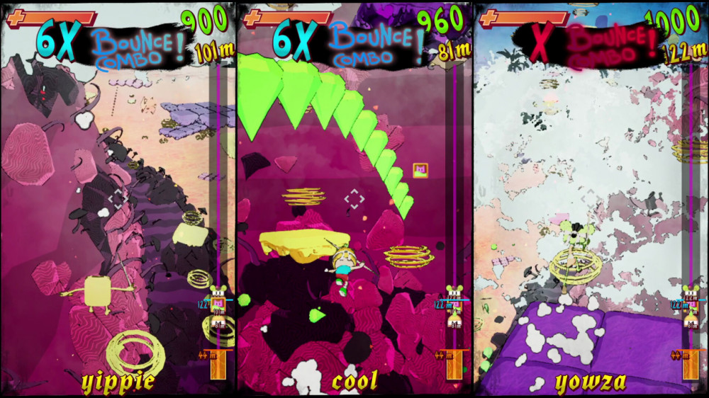 Игра заточена под локальный мультиплеер на четверых, можно как соревноваться, так и кооперироваться. Геймплей миксует трехмерный платформинг с динамичными перестрелками, требуя точности и быстрой реакции. Для хардкорщиков есть режим Бесконечность, где нужно выживать как можно дольше, убегая от поднимающейся лавы. Каждая секунда на счету, одна ошибка может стать последней.
