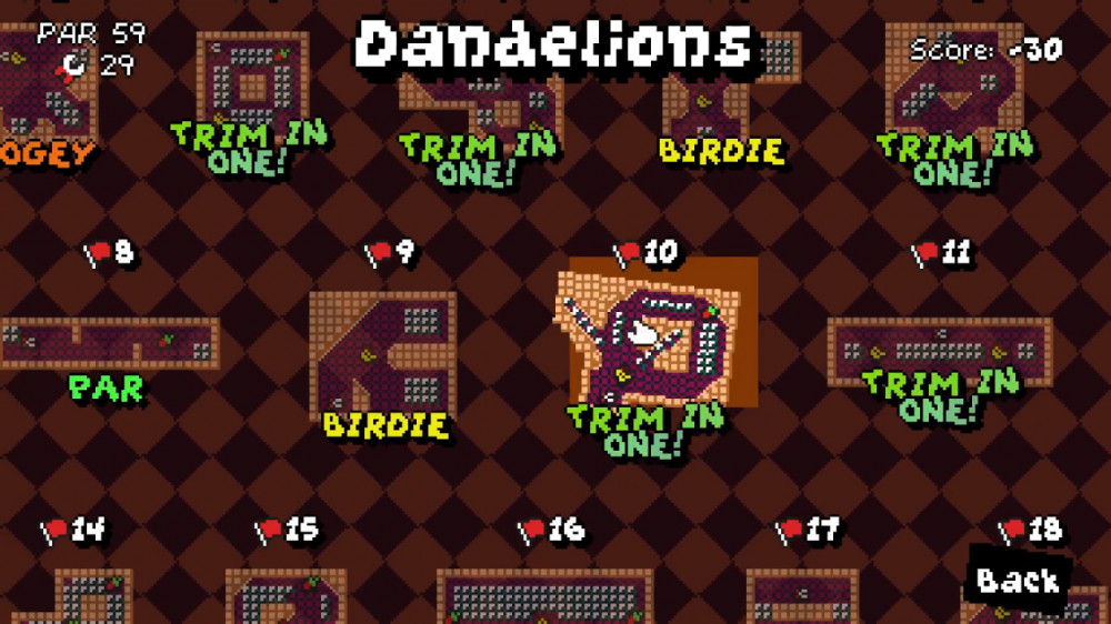 Trimjob - это аркадная игра, где ты должен срезать сорняки с идеальной точностью на 72 уровнях. Вся фишка в том, чтобы с первого раза убрать каждый сорняк, как идеальный удар в мини-гольфе. Графика здесь пиксельная, старой школы, и это вызывает такую ностальгию по старым аркадам. Саундтрак полностью оригинальный, сделан вручную, плюс звуки действий, всё это вместе создаёт атмосферу непритворного ретро-веселья.