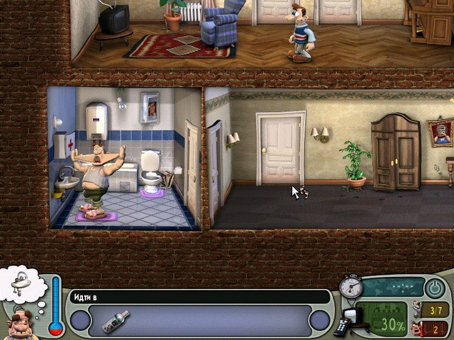 Протагонист может передвигаться обычным шагом и красться, а также взаимодействовать с окружениям. Ему надо постоянно прятаться от хозяина дома. Если тот его увидит, то побьет. В комнатах порой встречается собака или попугай. Мимо домашних животных приходится ходить на цыпочках, чтобы не спровоцировать шум. При этом можно специально шуметь при них, чтобы привлечь внимание тучного мужчины в те моменты, когда надо отвлечь его.