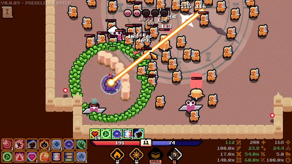 Можно сражаться в ближнем бою или атаковать противников издалека. Есть атаки через всю карту или мощные удары вплотную к врагу. Уровни генерируются случайным способом. Рандомно размещаются улучшалки и расположение врагов. На уровнях разбросаны различные эмблемы, усиливающие способности. Всего в игре доступно порядка 22 спеллов, 70 эмблем и 12 улучшений для них. Сражаться потребуется на 3 картах. Для каждой представлено по 5 модификаторов с испытаниями. На прохождение каждой карты потребуется около получаса реального времени.