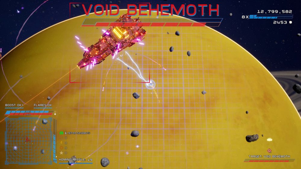 Это шутер с видом сверху, события которого будут разворачиваться в солнечной системе. Предстоит взять супер-скоростной корабль, который может за короткое время преодолеть большое расстояние. Также необходимо снабдить его достаточным количеством вооружения и других полезных вещей, которые сыграют свою роль при противостояниях. Нужно будет отстреливать своих противников, и при этом маневрировать через огромное число атак, не врезаться в астероиды и вообще, достаточно легко обходить препятствия.
