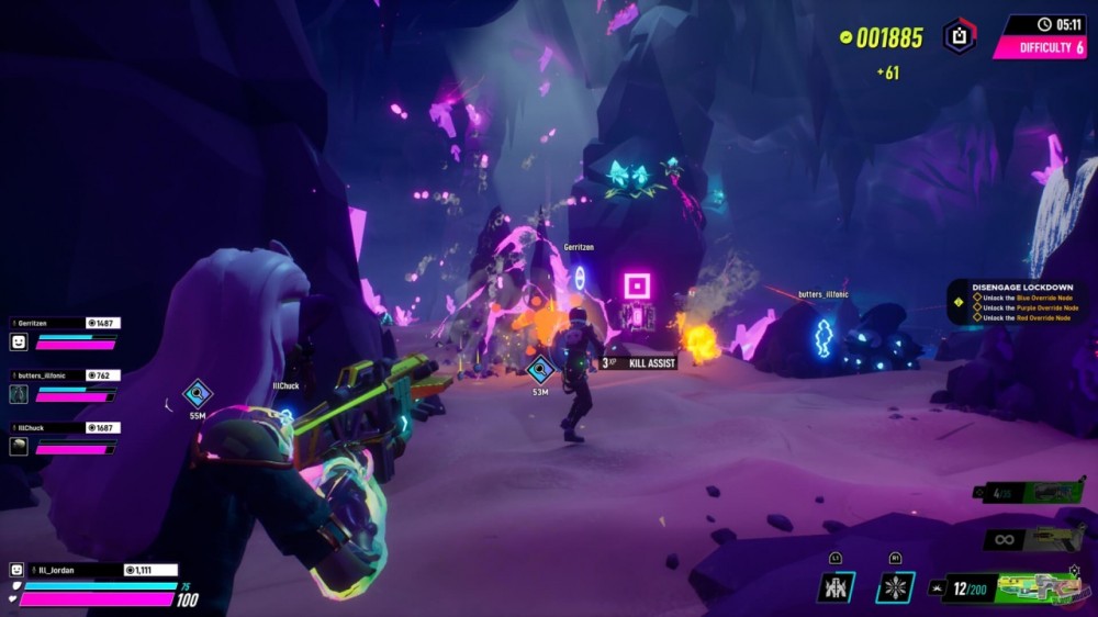 Игровой процесс содержит элемент рогалика, рандомизируя лут и расположения врагов. Представлено огромное количество PvP и PvE контента разной степени сложности. Каждый участник может испытать свои силы в любой миссии. В зависимости от сложности меняется количество врагов и скорость геймплея. Таким образом игровые элементы каждый участник подбирает под свой скилл и темп. За убийство врагов и главарей начисляются различные бонусы.