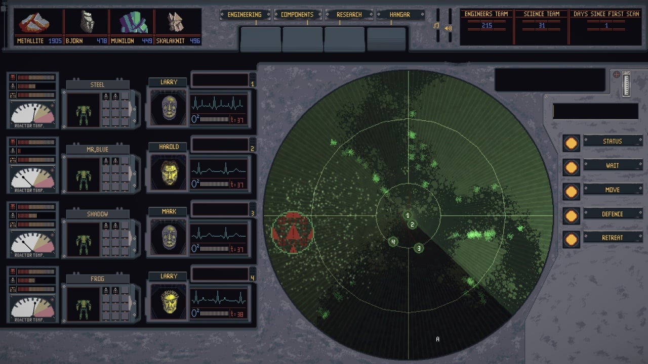 Механики игры состоят из: Активации реактора, Настройки оружия, Сборки, Покупки компонентов и Исследования. Самыми важными показателями для бойцов являются REACTION и C.B.S. TEST. Вы можете отправить на задания только тех роботов, у которых есть пилоты. RESEARCH позволяет изучить новые технологии. Кнопка INGNITE позволяет привести меху в действие после того, как все компоненты были установлены правильно.