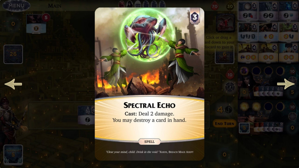 Каждый ход юзер разыгрывает драгоценные карты и получает эфир. Он тратится на изучение заклинаний, покупку реликвий и камней и повышение магических способностей. Однако по мере прокачки открываются и новые бреши. Порядок хода в данной игре определяется случайным образом. За очередность отвечает отдельная стопка. Благодаря рандому возникают ситуации, когда волшебники ходят четыре раза подряд или их противники атакуют дважды. Враги представлены следующими созданиями: Carapace Queen, Crooked Mask, Prince of Gluttons, Rageborne. Каждый монстр требует к себе особенного подхода. При новых сессиях атаки и модели поведения этих чудовищ меняются, что делает бои с ними разнообразными.