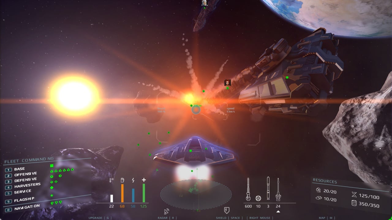 - Стратегический – геймер получает в своё распоряжение целый флот и гигантскую базу. Добывая ресурсы и ведя войну, приказывая подконтрольным юнитам, играющий проходить определённые эпизоды и принимает решения, влияющие на продолжение истории.
