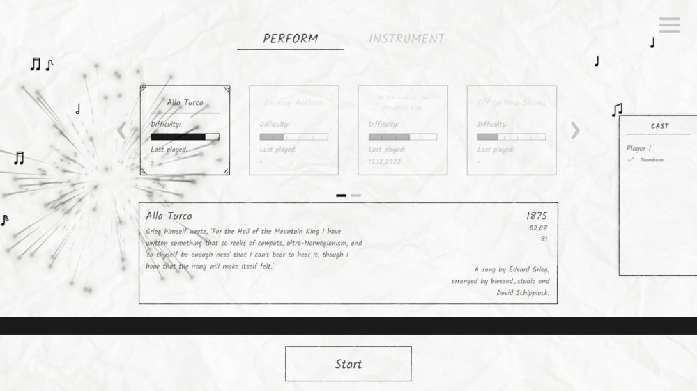 У проекта имеется динамичный звуковой движок. На выбор предоставляются различные встроенные композиции. В DB также присутствует возможность загружать в игру треки со своего компьютера. Помимо этого можно писать собственные саундтреки через MIDI и вставлять их в видеоигру, а также делиться своими творениями с другими и запускать чужие работы, созданные пользовательским сообществом. Управление тут простое и интуитивно понятное. Можно использовать мышь или геймпад. Система подсчета очков и распознавания нот дружелюбна к новичкам.