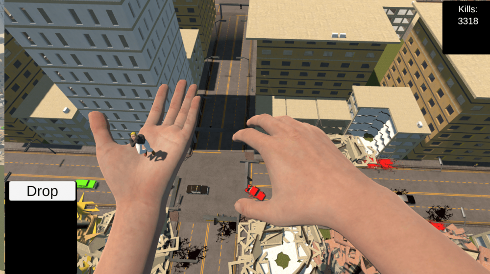 Мы управляем одним из представителей человечества. Наша задача – выжить в творящемся хаосе, спасать людей из зданий и постараться не попасть под ноги одному из великанов. Есть 3 карты: мегаполис, пригород и пляжная зона. Можно выбирать, кто будет ломать всё вокруг. Доступно три типа мужчин, такое же количество молодых женщин и одна девочка-кошка. Различаются они между собой только внешне. На одном уровне может находиться кто-то один из них. Огромные барышни в этой инди-игре расхаживают в купальниках. Гигантские создания постоянно отпускают язвительные комментарии или напрямую угрожают. Присутствует возможность самому стать громадиной и начать топтать крошечных человечков.
