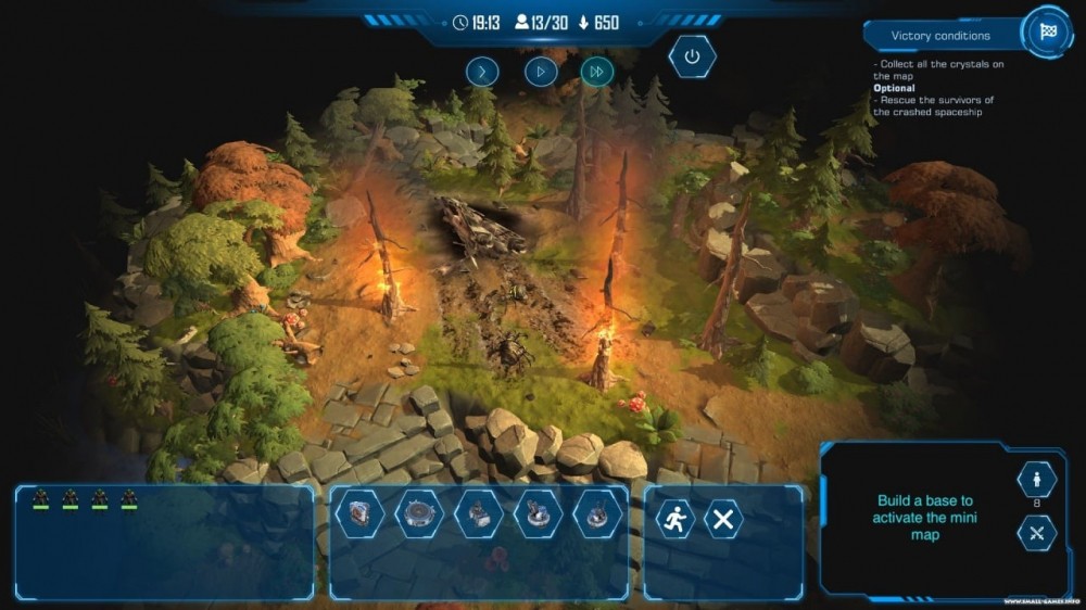 Игроку предстоит управлять собственной базой, увеличивать армию и заниматься экономикой. Вид происходит сверху, но некоторые мета на карте заняты туманом войны. Чтобы изучать область, потребуется перемещать воинов. На карте расположено множество залежей или одиночных кристаллов, если их разбить для добычи, то это привлечет местное население. Обитатели на Планете-27 недружелюбны и всегда будут атаковать тех, кто пытается уничтожить их единственную ценность – кристаллы.