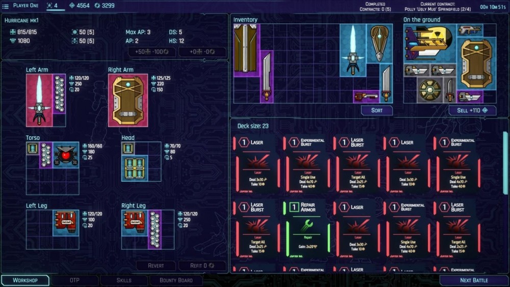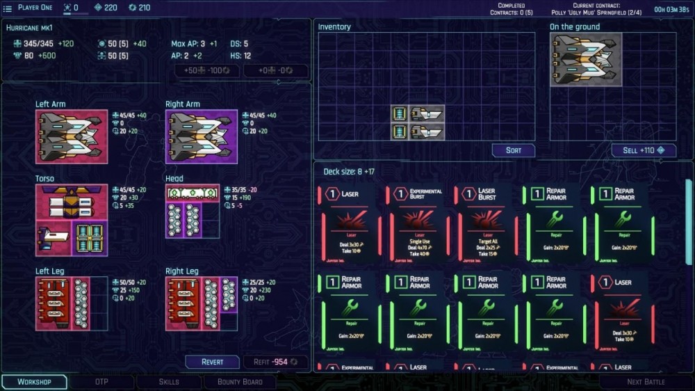 Карты добавляются в том случае, если находится новое снаряжение или вооружение. Меняя экипировку, собирается уникальная колода. Участвуя в сражениях, повышается уровень пилота. Умения можно настраивать самолично, определяя стиль боя своего персонажа. Для прокачки доступно древо из нескольких веток, позволяющих собирать неповторимый билд бойца. Экспериментируя, можно выработать индивидуальную механику, которая позволит сокрушить любого врага на своем пути.
