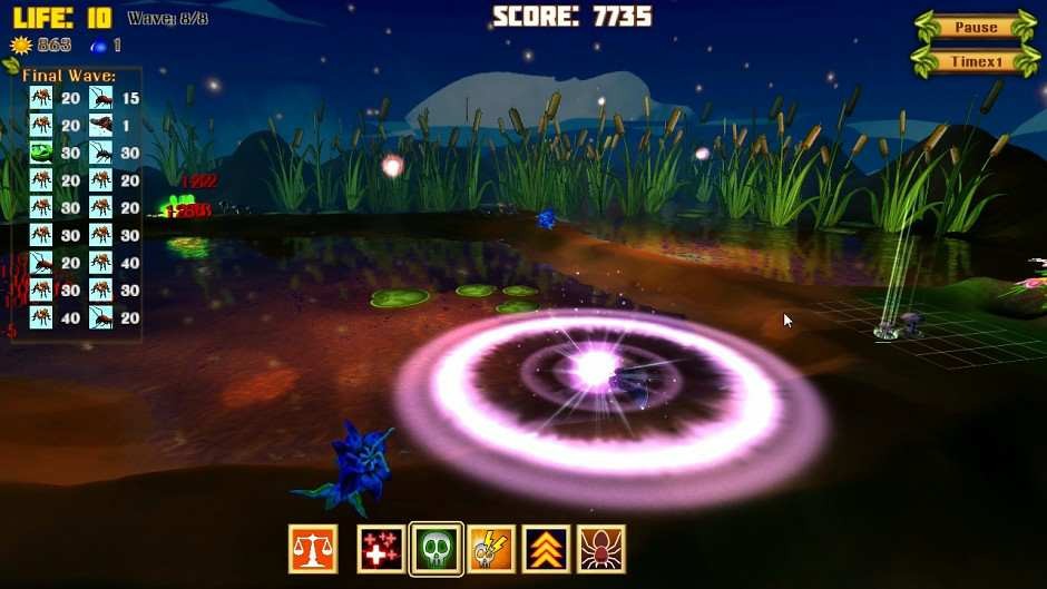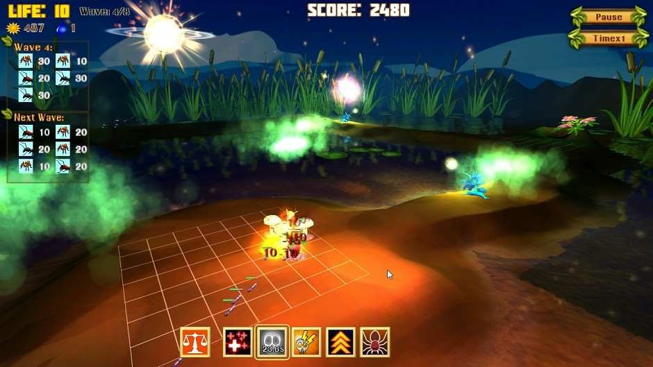 Погрузитесь в настоящую эко-битву за жизнь. Отбивайте атаку прожорливых гусениц, жуков, пауков, грибков и сражайтесь с могущественными муравьями, которые атакуют роем. Перед вами предстанет настоящая битва ядовитых плющей и саранчи, зеленых мух против мухоловок и многое другое. Всего представлено порядка 10 разновидностей врагов и защитных башен. Устанавливайте защитные вышки и другие механизмы, способные защитить от нашествия надоедливых насекомых.