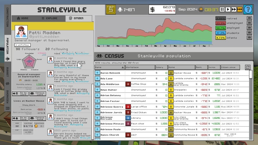 Пробки - вечная проблема всех мегаполисов. Требуется решать этот вопрос в срочном порядке, а особенно позаботиться о том, что каждый час пик не превратился в катастрофу. Юниты работают в разные смены поэтому можно продумать грамотную стратегию решения проблемы. Если жители будут все время опаздывать, то могут потерять работу, а это приведет к финансовым потерям. Каждый гражданин имеет свои характеристики и навыки, поэтому стоит правильно распределять рабочие места и назначать тех сотрудников, которые лучше всего справятся с конкретном типом задач.