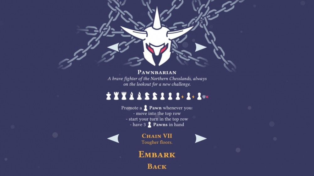 Соперники передвигаются на отличающиеся дистанции, в зависимости от их типа, как в стандартных шахматах. По мере продвижения геймер зарабатывает сокровища и улучшения, необходимые для модернизации имеющихся карт. Режим блиц предлагает короткие 15 или 30-минутные сессии с усиленными врагами и большим числом ловушек. Перед началом юзер выберет одного из трех персонажей с собственными навыками и характеристикой. 3 отличающихся подземелья требуют уникальный подход, включая разные ловушки, врагов и особенности.